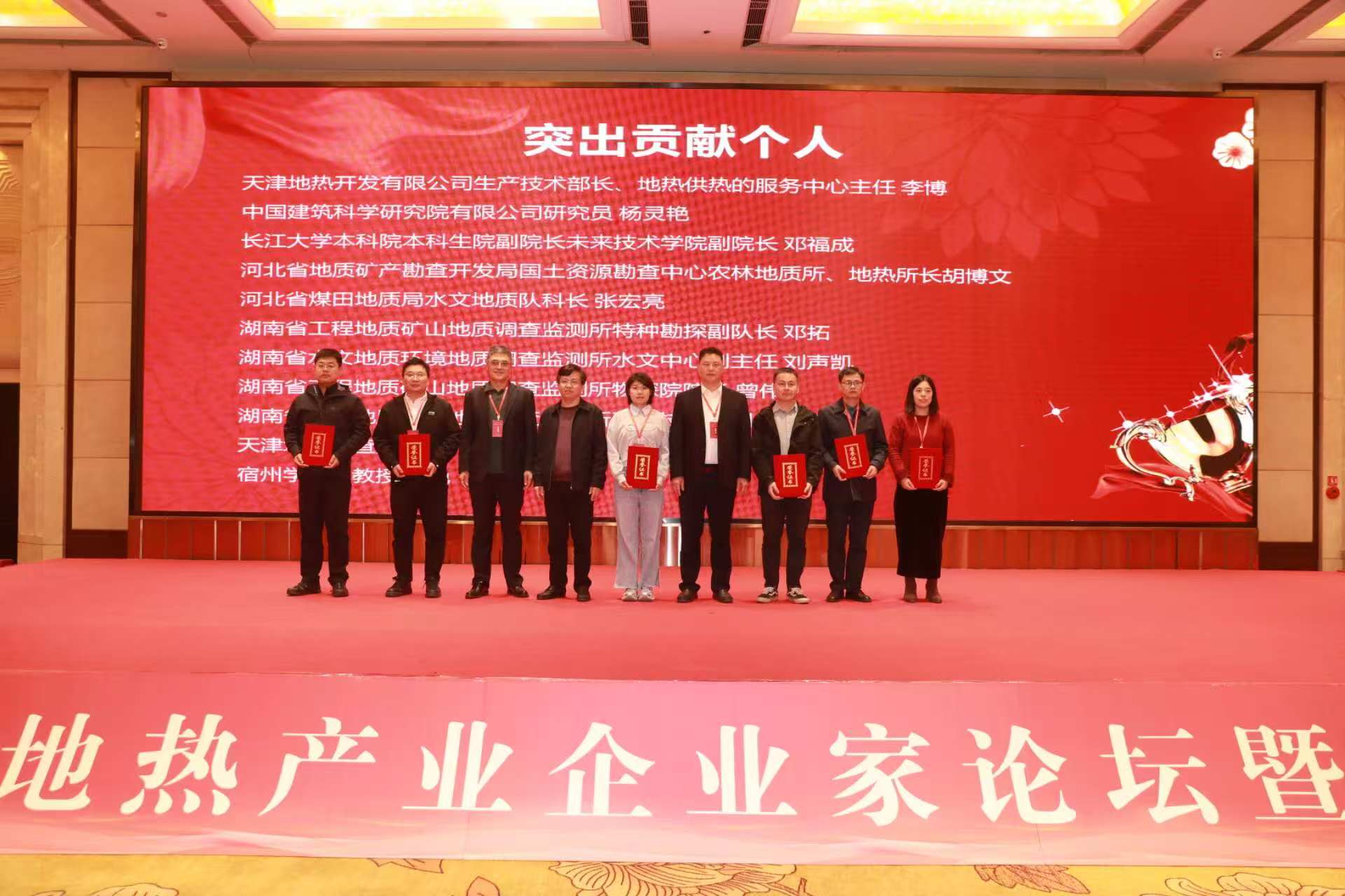 在12月25日至27日召开的“2024地热产业企业家论坛暨平台年会”上传来喜讯,湖南工矿所荣获“2024 地热行业突出贡献单位”,所长吴兵良荣获“2024地热行业突出贡献人物”,所地热团队成员邓拓、曾伟、唐建军、汪超荣获“2024 地热行业突出贡献个人”。