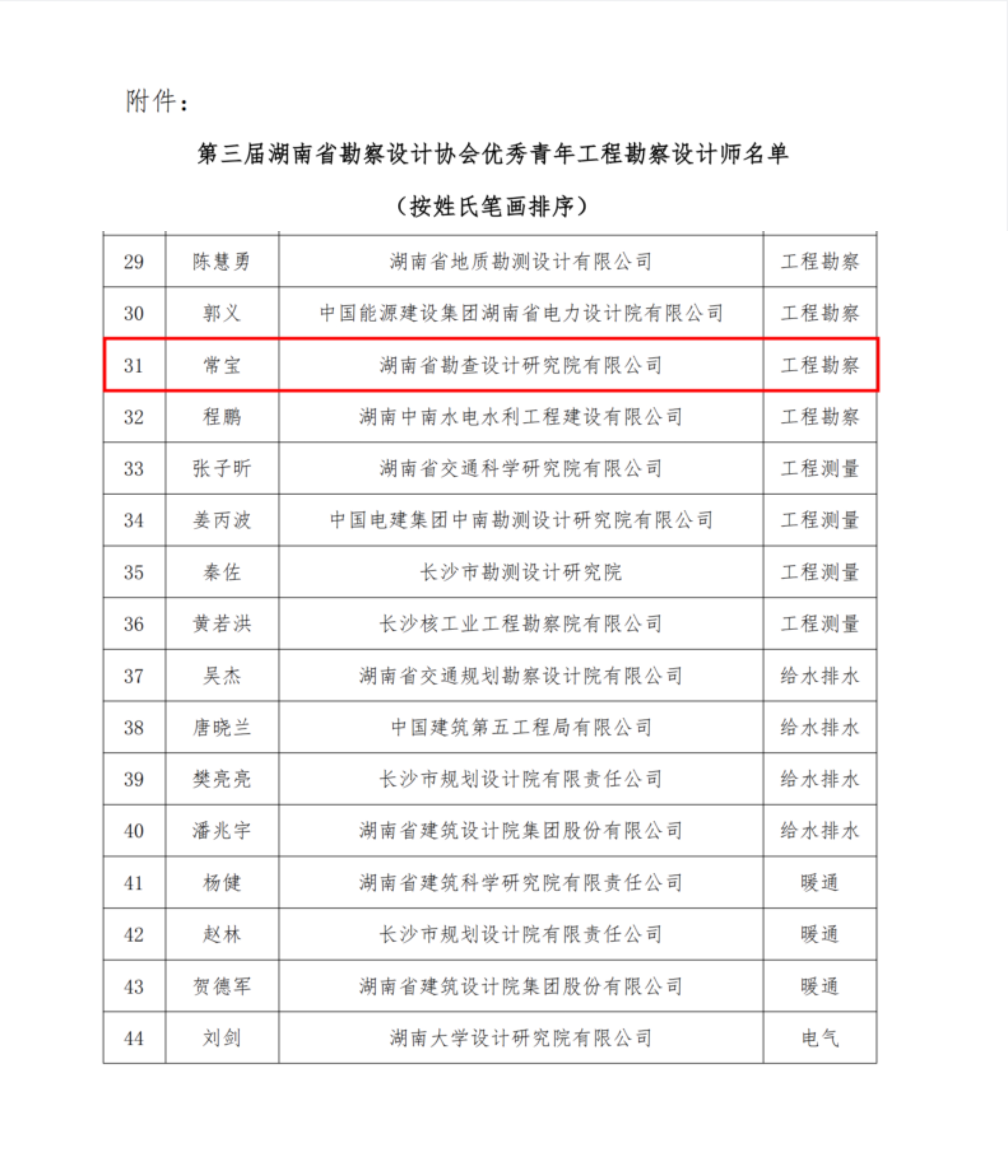 喜 报|常宝同志荣获“湖南省勘察设计协会优秀青年工程勘察设计师”称号