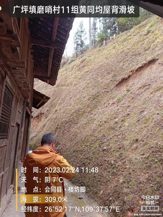 今年2月8日,常驻会同的专业技术人员李冬根、杨毅闻汛而动,即刻赶往会同县开展汛前排查的日常工作。3月底,在接到区域内有大到暴雨的气象预警后,技术人员联合会同县自然资源局迅速前往林城镇酿溪村不稳定斜坡地灾隐患点进行巡查,查看监测设备是否运行正常,了解隐患点情况,提前做好雨前、雨中、雨后的巡排查工作。自4月起,技术人员持续在指导各乡镇开展地灾隐患排查应急避险演练和农村切坡建房边坡防护工作。