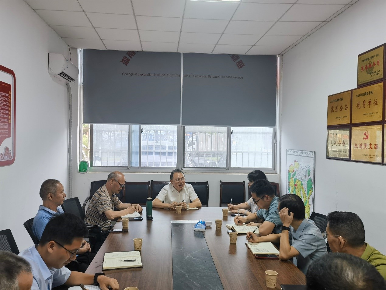 调研会上,蒋文武所长仔细听取了分所负责人的汇报,详细了解了分所的专业技术力量、项目储备情况等,并充分肯定了上半年所取得的成绩,为即将开展野外施工的湖南省桂阳县XXX铀矿调查评价项目加油鼓劲。他强调,核地质事业是我所的主责主业,意义重大。所里将在人才、仪器设备等方面给予大力支持,希望大家扛起核地质大旗,