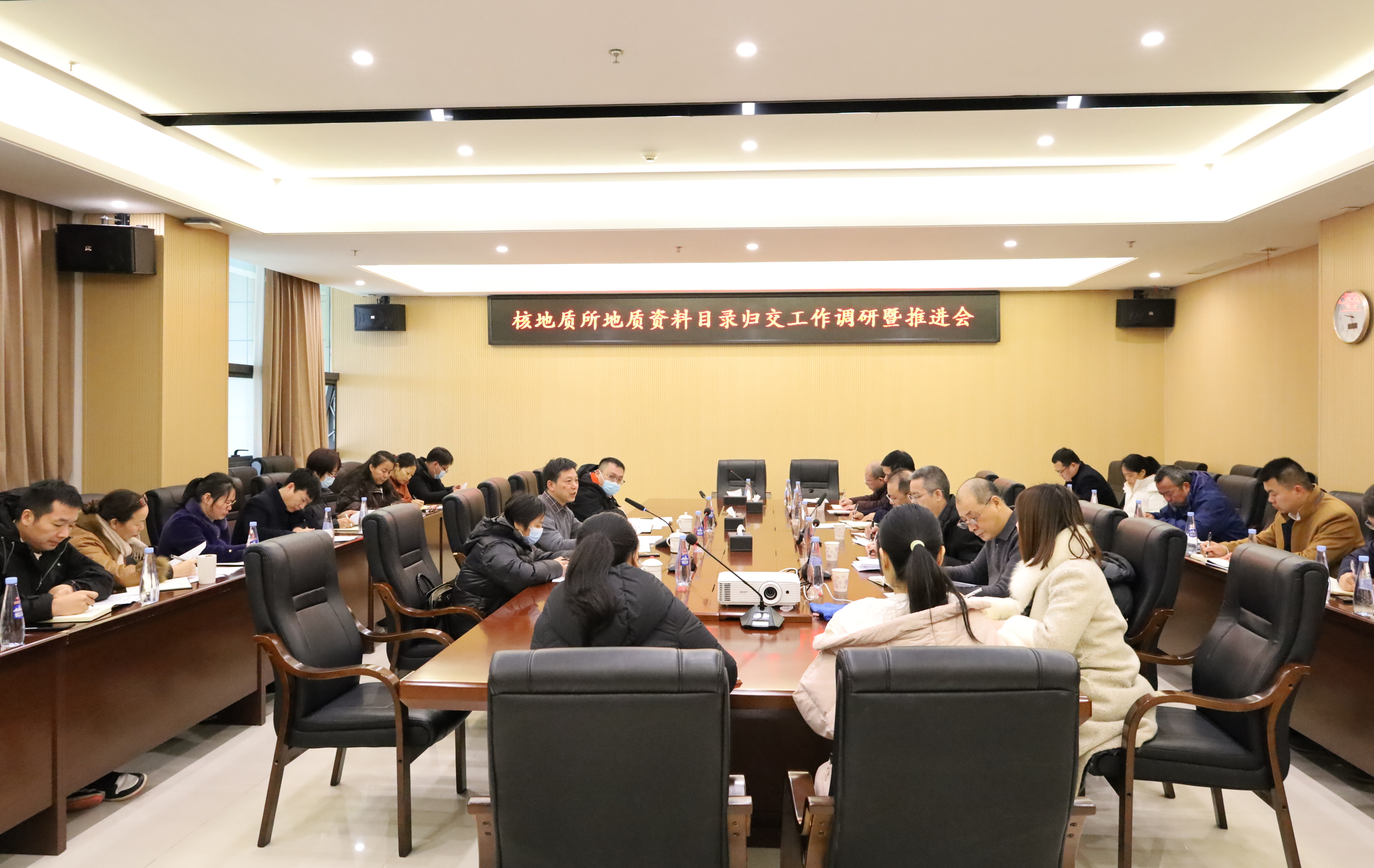 1月30日,新葡京娱樂一级巡视员吴宏斌带队到核地质所开展地质资料目录归交工作专题调研,组织召开座谈会,推进地质资料目录归交工作。地信所科技室副主任王剑、地调所档案应用室研究馆员孔晖陪同调研,核地质所在家所领导、相关部门(单位)负责人、所地质资料目录归交工作小组成员共计40余人参加座谈。