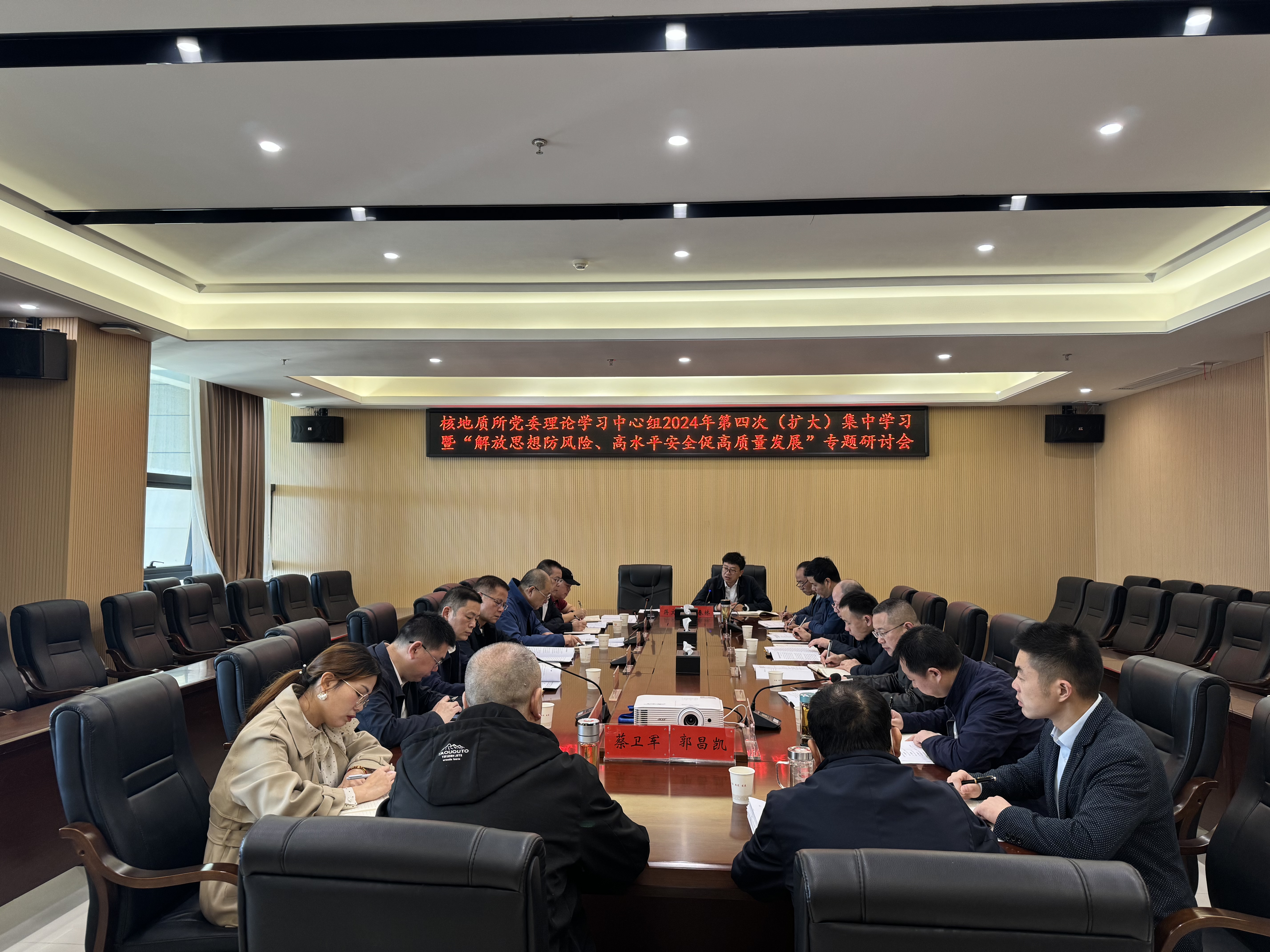 3月29日上午,核地质调查所召开了党委理论学习中心组2024年第四次(扩大)集中学习暨“高水平安全促高质量发展”专题研讨会,在家所党委领导班子成员、相关部室负责人、核地发展集团负责人等22人参加会议。会议由所党委书记黄春林主持。