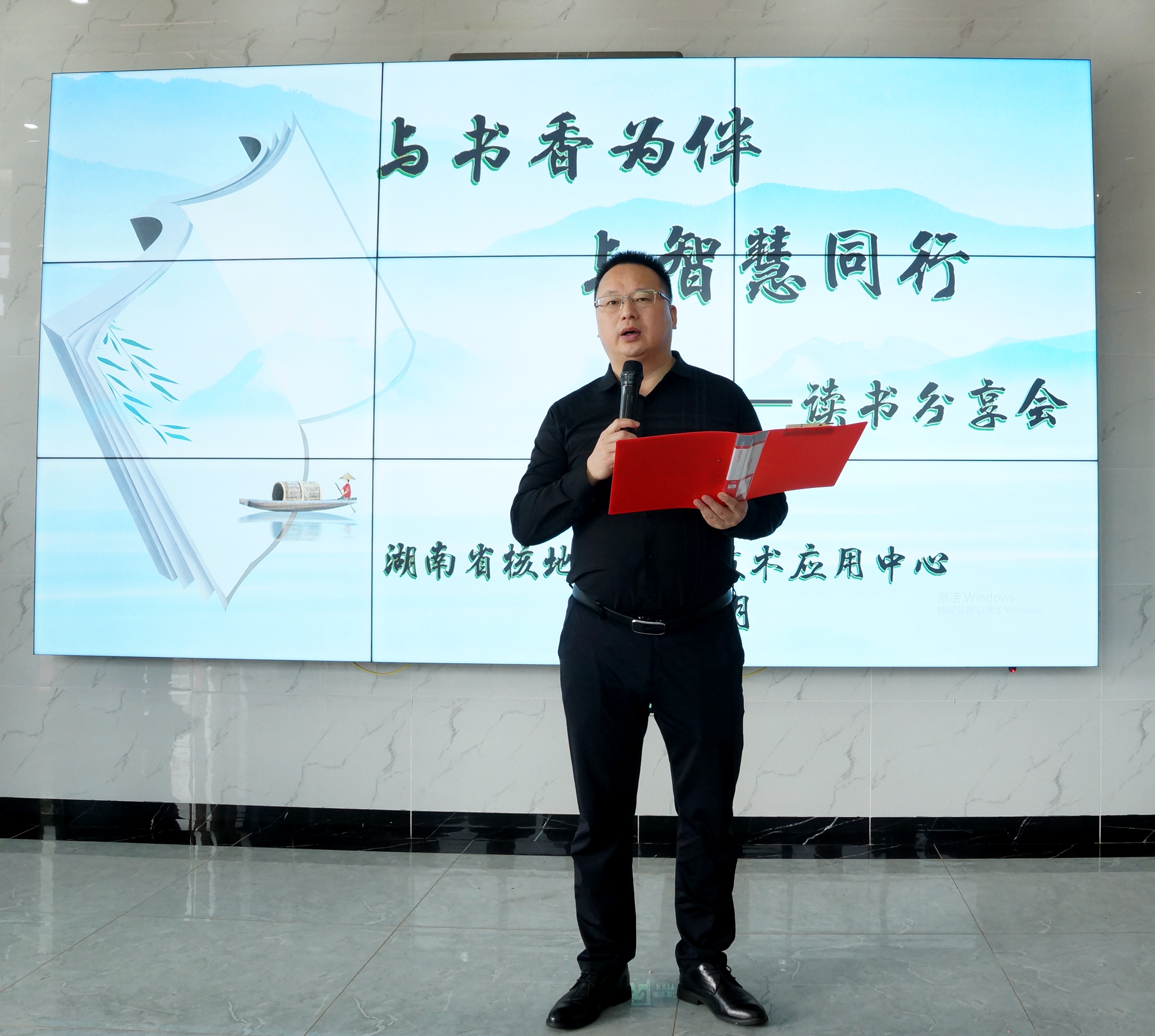 赵胤淳朗诵《倾情山野 家书为伴》,从家书中品地质人家国情怀:老一辈地质科学家们,坚持为国报效,撑起了中国人的脊梁,彰显了地质先辈的担当;湖南地质父辈们,用脚步丈量大地,用坚守诠释忠诚,展示了地质父辈的坚守;新时代地质青年或继续坚守大山,或已走出国门,传承着父辈使命,无悔着青春年华,体现了地质后辈的传承……读书分享让在场人员深受感染。