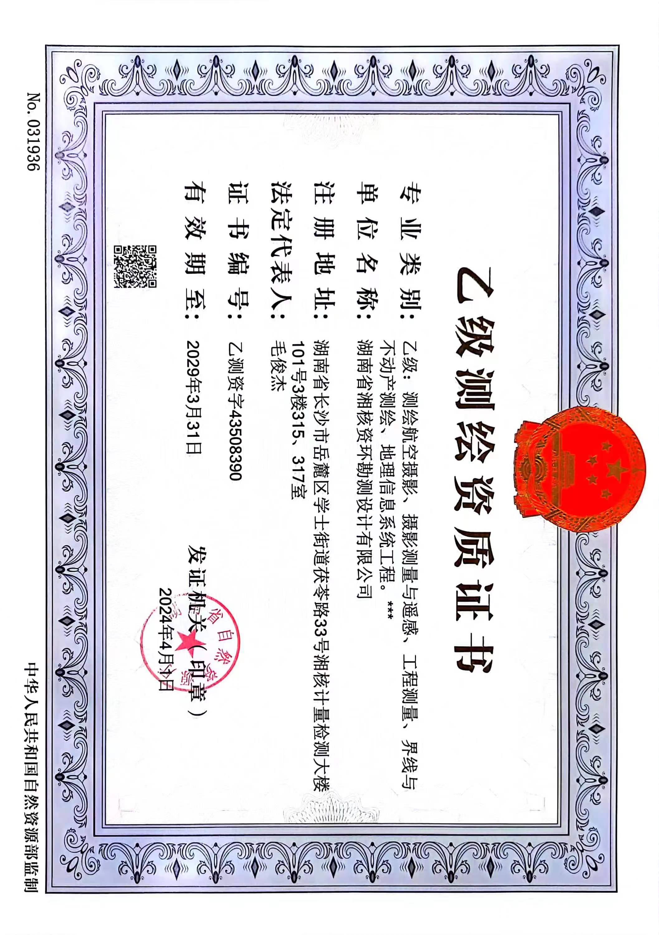 近日,中心下属企业湖南省湘核资环勘测设计有限公司成功获得测绘乙级资质证书。资质范围包括测绘航空摄影、摄影测量与遥感、工程测量、界线与不动产测绘、地理信息系统工程。