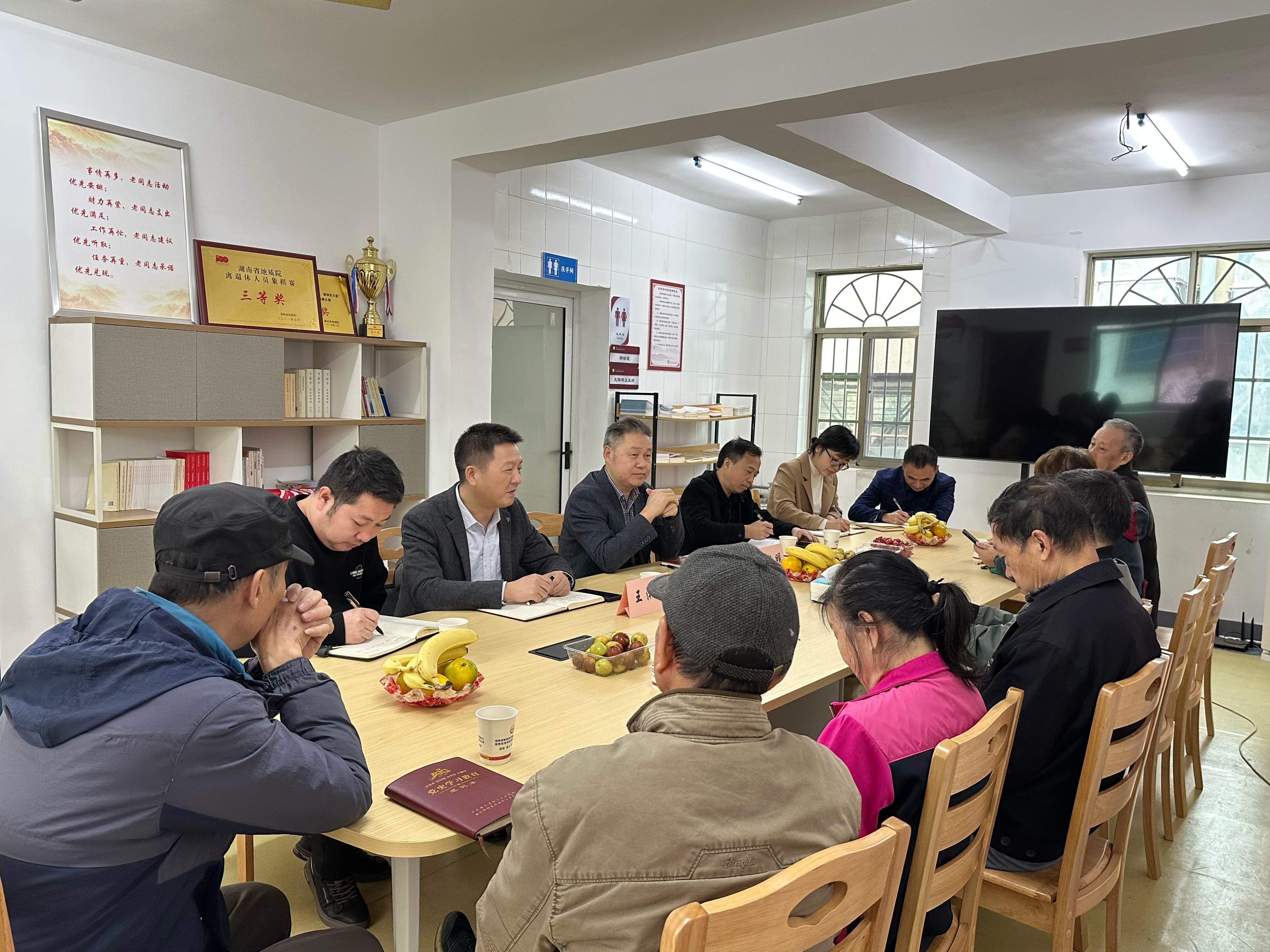 中心离退办、物业公司、飞碟公司相关负责人参加座谈。(文图/黄颖君)