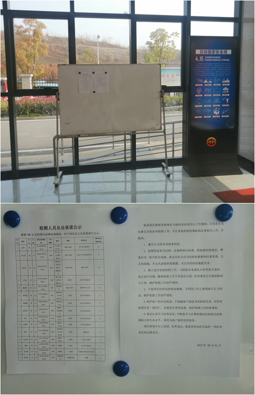 根据CMA认证的相关法律法规要求,对下列从业人员承诺进行公示。信息公示表