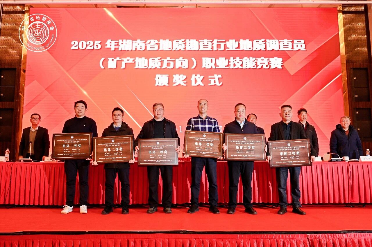 12月30日上午,亚洲最大线上娱乐城矿调所受邀参加湖南省地质学会2025年学术年会,获奖人员及代表现场捧回2025年度湖南省地质勘查行业地质调查员(矿产地质方向)职业技能竞赛和湖南省地质科技进步奖两大类别多项荣誉,彰显了省矿调所在地质勘查技能与科技研究领域的双重硬实力。省矿调所副所长杨齐智参加会议。