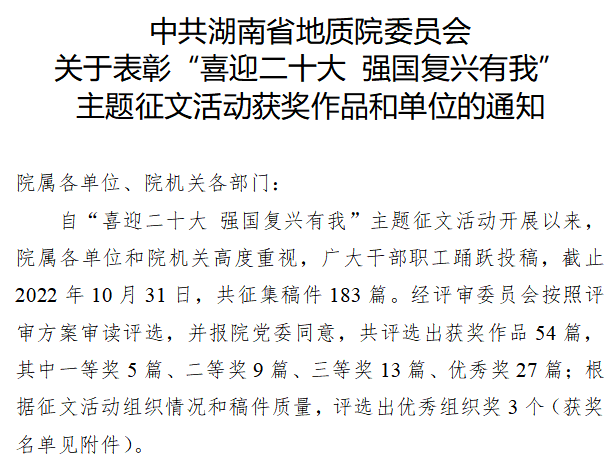 近日,湖南省矿调所陆续收到多家单位送来的感谢信。一... .....