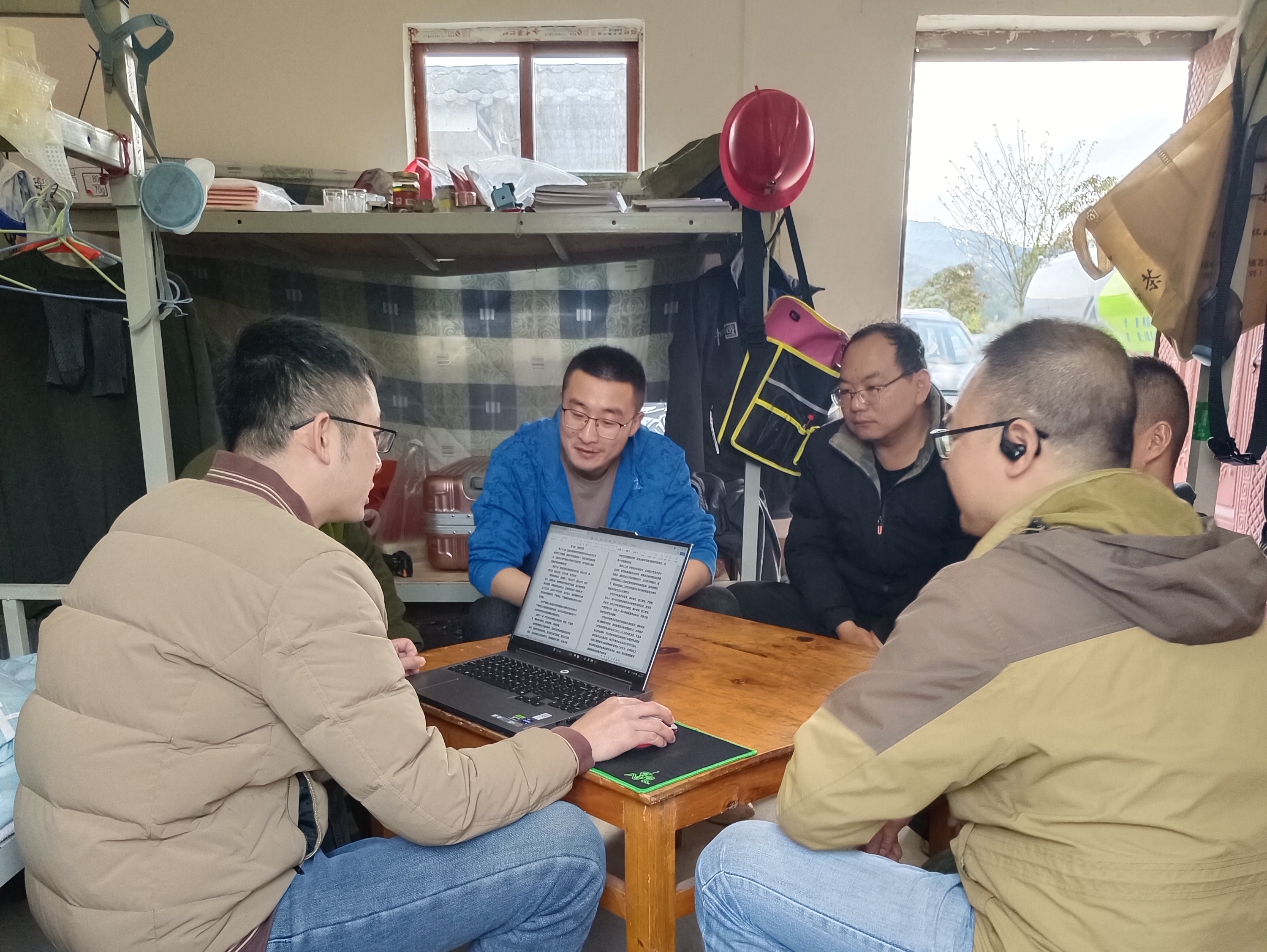 从2017年尽职调查开始,至2018年矿区开展地质详查工作,再到2025年地质详查三期,空间所始终扎根滇西大地。水城项目地处滇西高黎贡山,地质条件复杂,自然环境恶劣,平均海拔2000余米,山高林密,沟壑纵横,年平均降雨量高达2106毫米。面对“施工难度大、管理难度高、建设周期长”的挑战,省空间所高位谋划、系统推进,所长李剑雄亲自带队与甲方高层磋商、深入项目实地调研,并抽调骨干力量组建技术团队,快速推动项目实施。