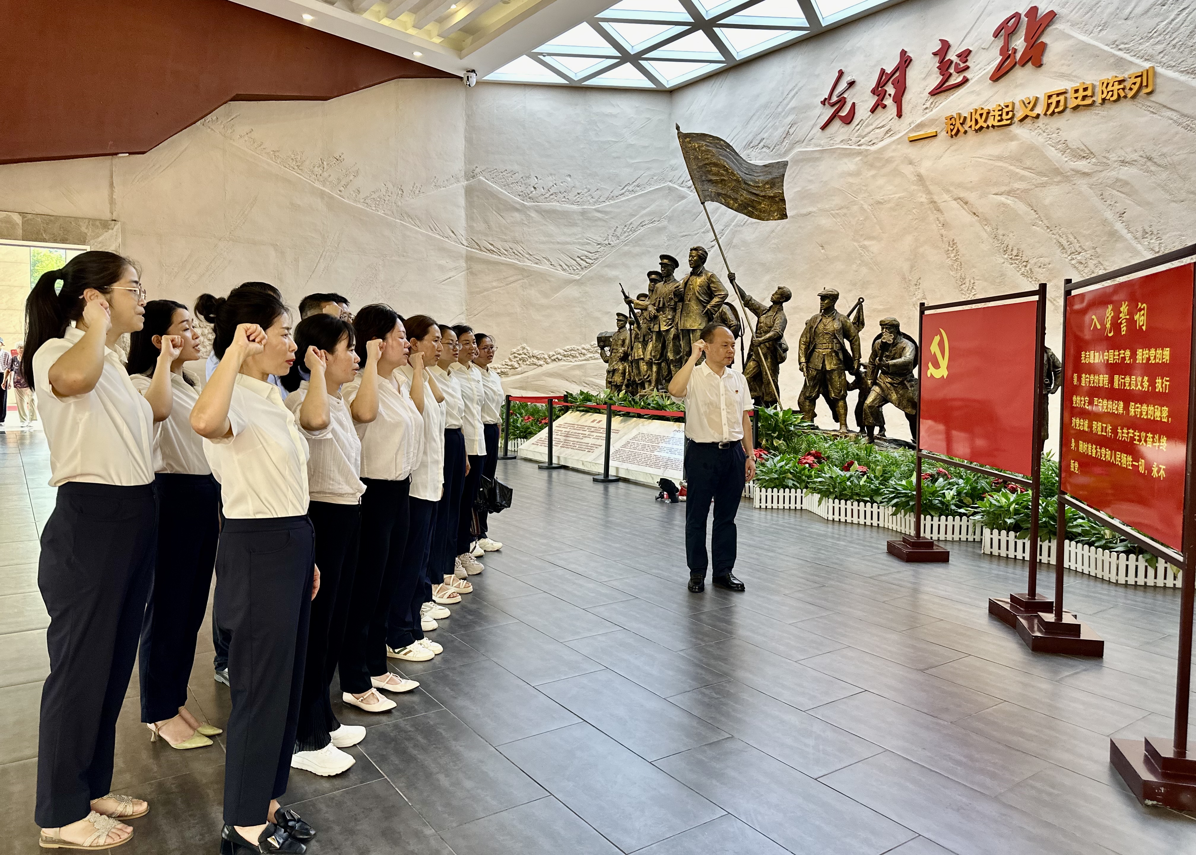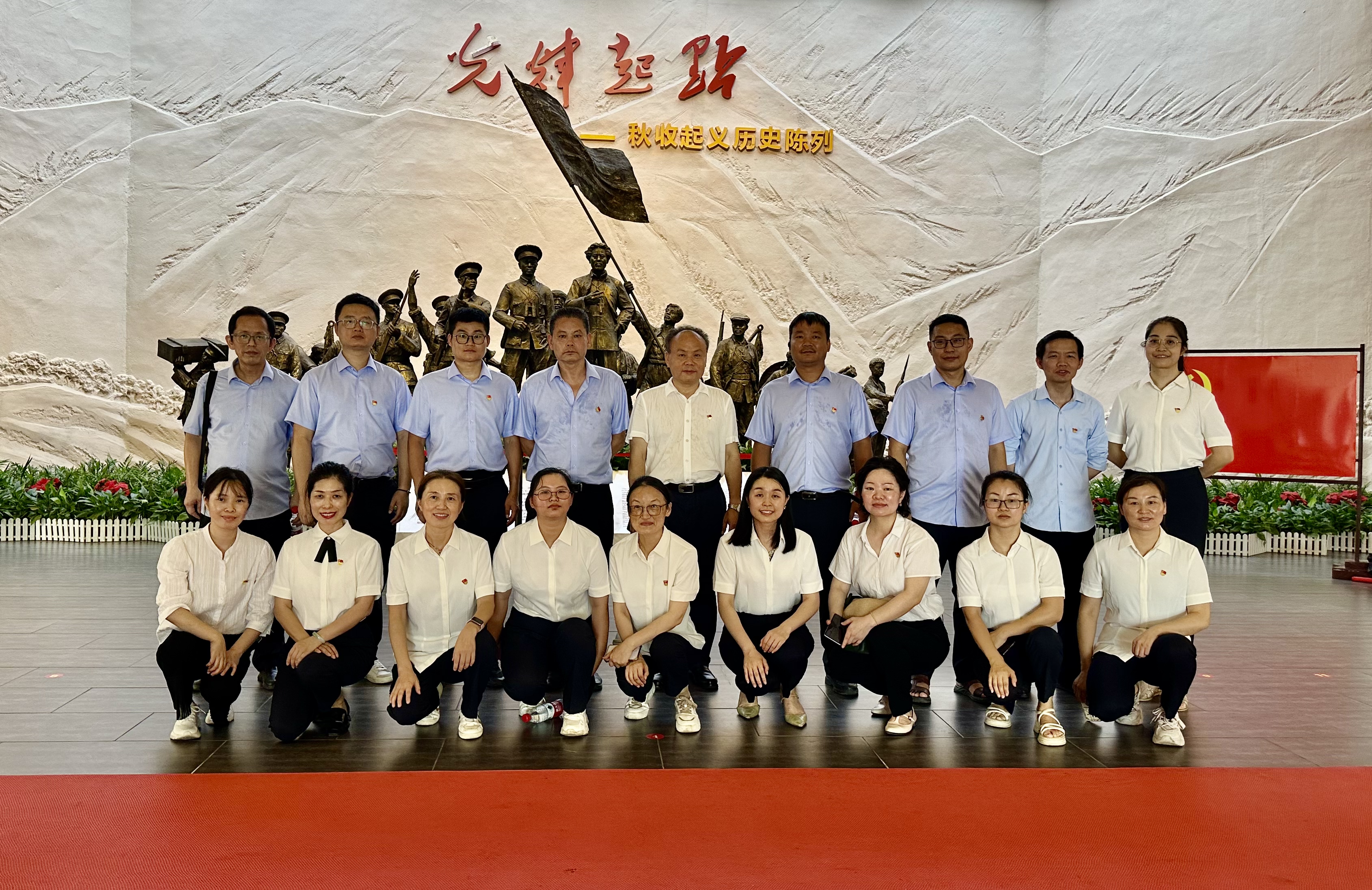 在秋收起义文家市会师纪念馆,李学军带领党员们重温入党誓词。李学军以《为新征程推进全面从严治党提供坚强纪律保障》为题给党员们上微党课。李学军在总结讲话中指出,要从革命先辈的故事中学习他们严守党纪,听党指挥的革命精神,并把这种革命精神带到工作实践中去,用严的纪律约束自己的言行,用实干推动单位发展。