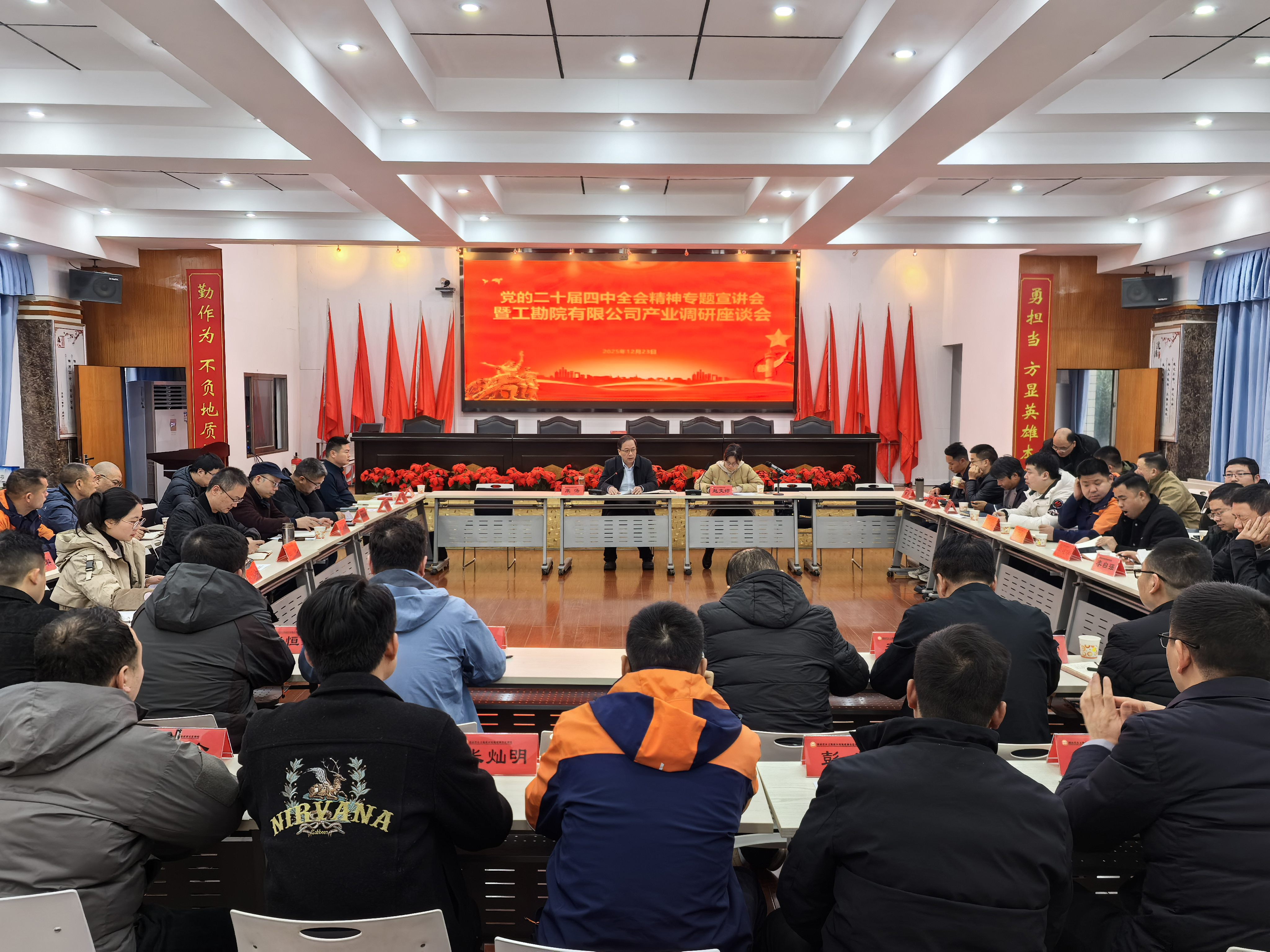 为深入贯彻党的二十届四中全会精神,行稳致远推动亚洲最大线上娱乐城水环所高质量发展,12月23日,亚洲最大线上娱乐城水环所在水文基地召开党的二十届四中全会精神宣讲会暨工勘院有限公司产业调研座谈会。会议聚焦一线实情,挖掘产业潜力,共同谋划高质量发展路径。所长康汤主持,党委书记韩冰出席,副所长苏吉平、纪委书记赵文婷参加会议。 会上... .....