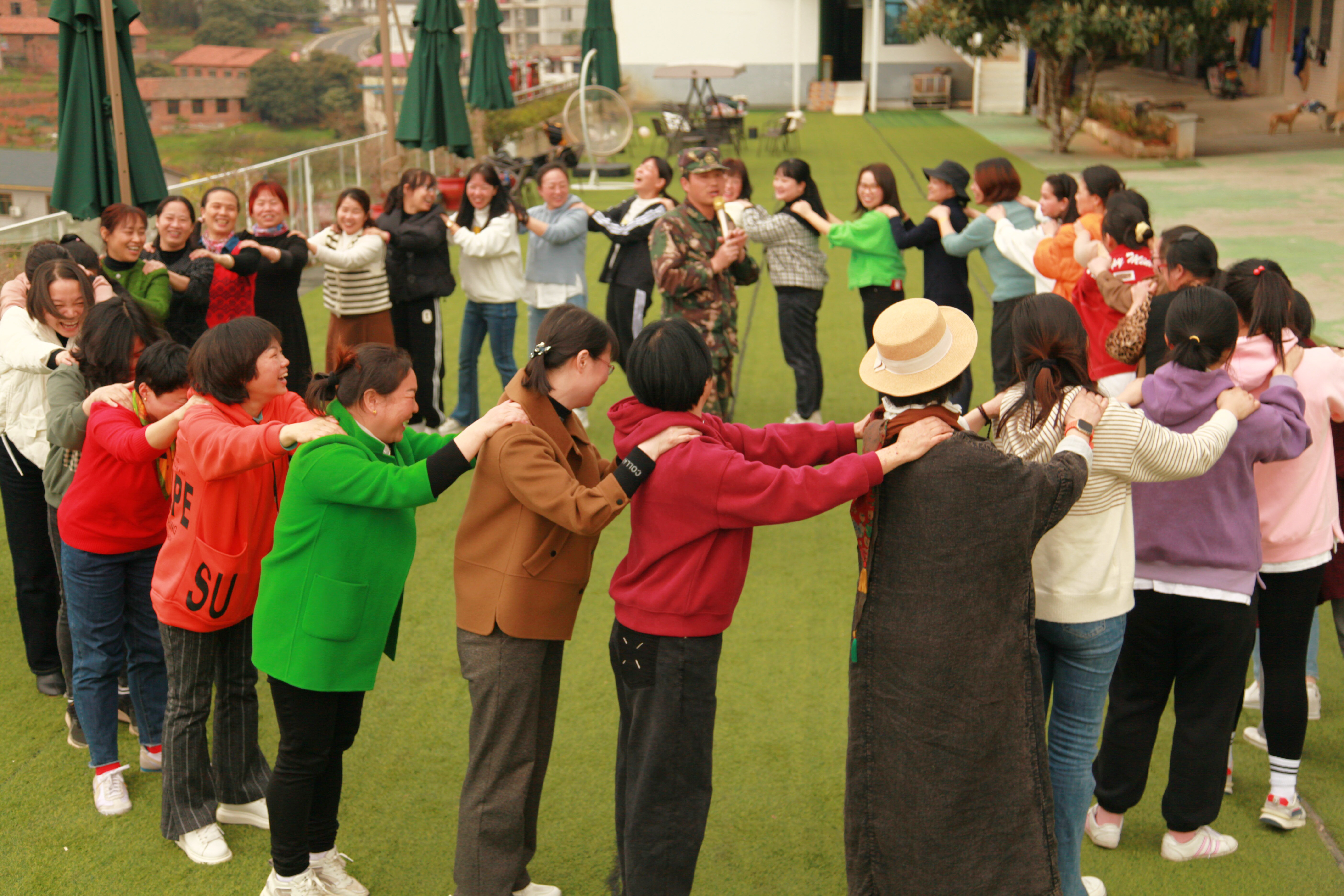 拓展活动以欢快的跳兔子舞拉开了序幕,随后以小组的形式开展竞技活动。户外救援、大河之舞、前胸贴后背,一个个有趣欢乐的游戏项目,进一步拉近了人与人之间的关系,增强了彼此之间的信任,增加了大家的团结协作精神。大家在特定的环境中不断去发现、去思考、去感悟,对自己、对团队重新认识、重新定位。活动现场欢声笑语、其乐融融。