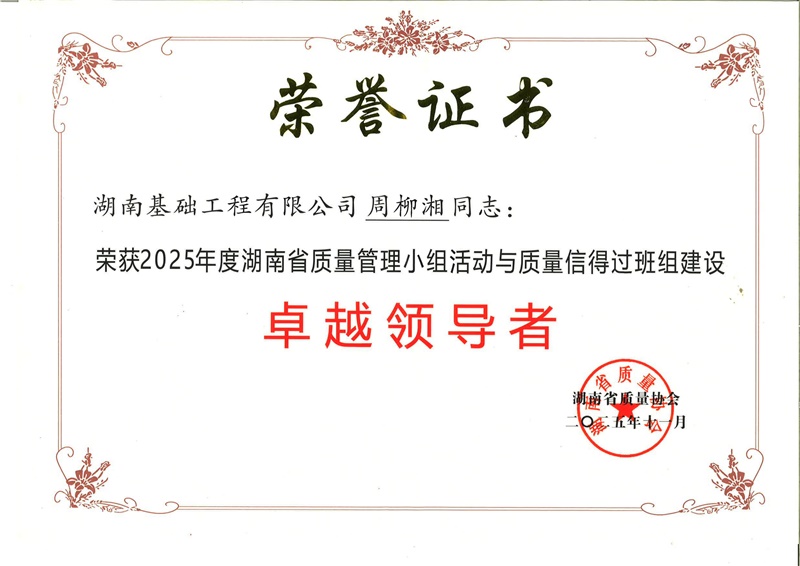 这一荣誉,是对基础公司长期以来坚持质量优先、深耕群众性质量管理工作的高度认可。站在新的发展起点,公司将持续深化QC小组活动与质量信得过班组建设,以质量铸就品牌、以创新驱动发展,持续提升质量管理效能,为湖南质量强省建设、湖南地质事业高质量发展注入更强劲动力。