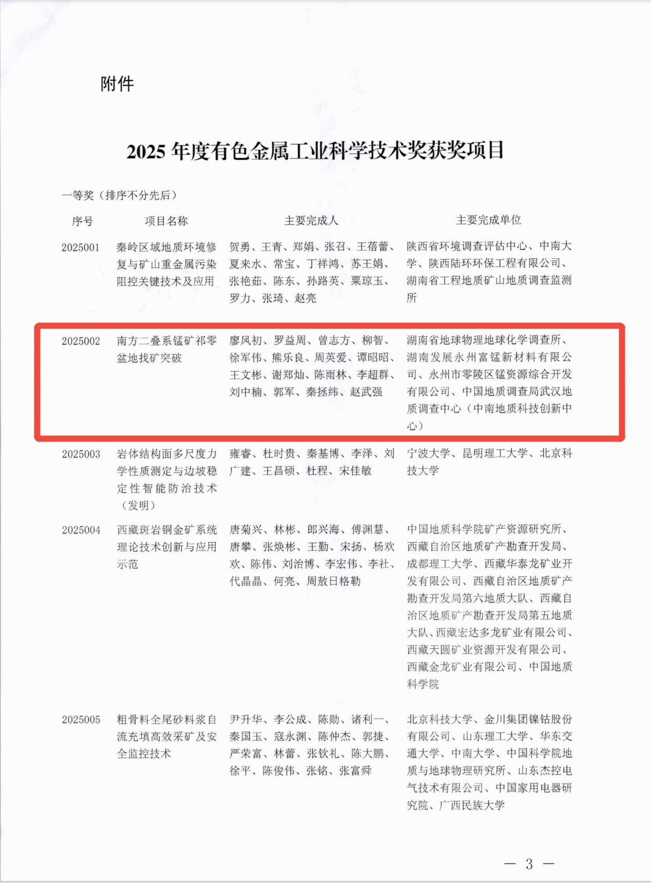 近日,中国有色金属工业协会与中国有色金属学会联合公布2025年度有色金属工业科学技术奖获奖名单,亚洲最大线上娱乐城物化所牵头申报的“南方二叠系锰矿祁零盆地找矿突破”项目荣获2025年度有色金属工业科学技术奖一等奖。