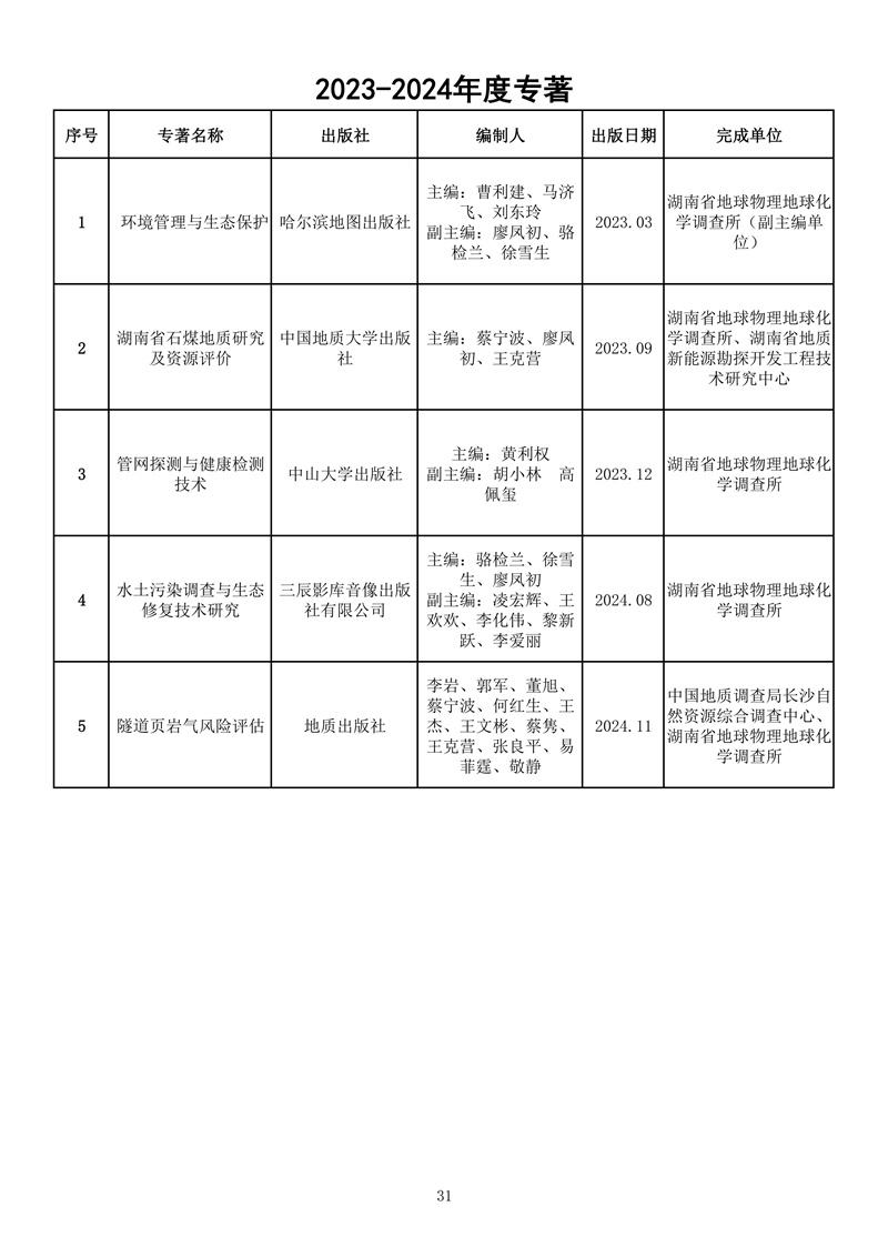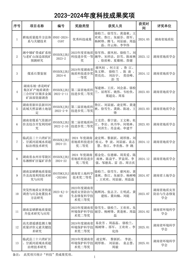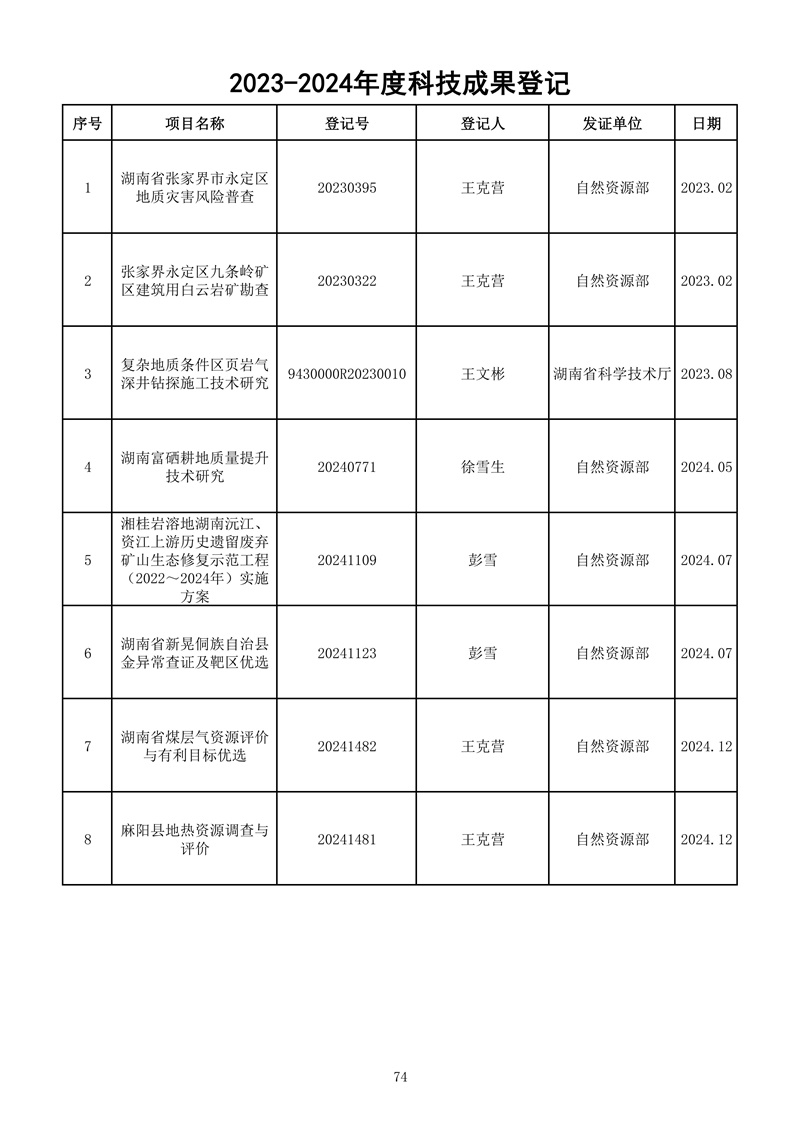 湖南省地球物理地球化学调查所取得多项科技成果,如下: