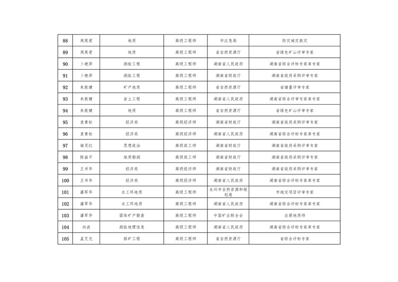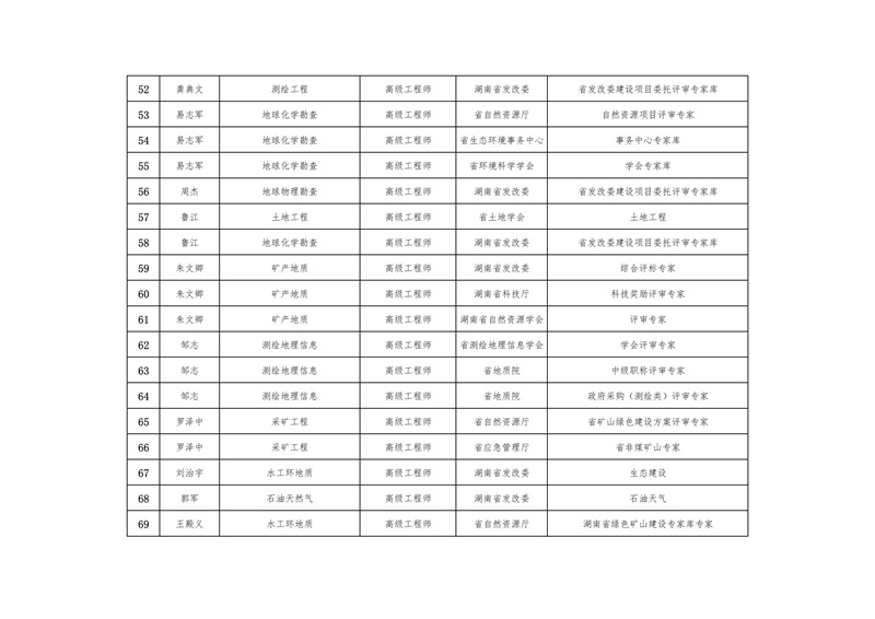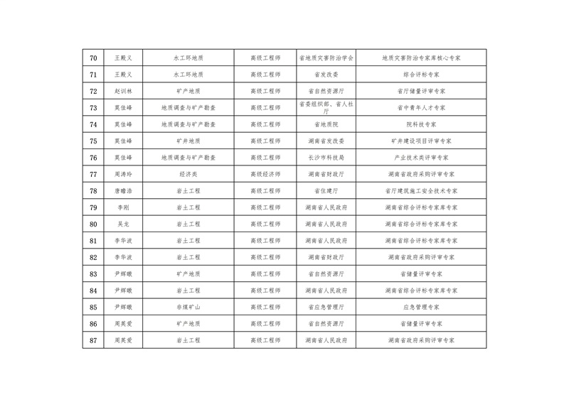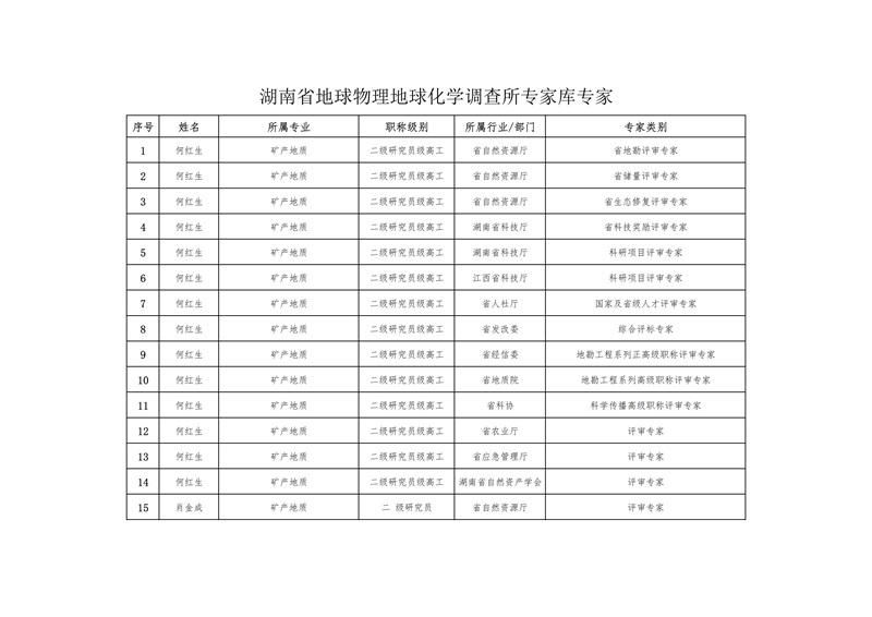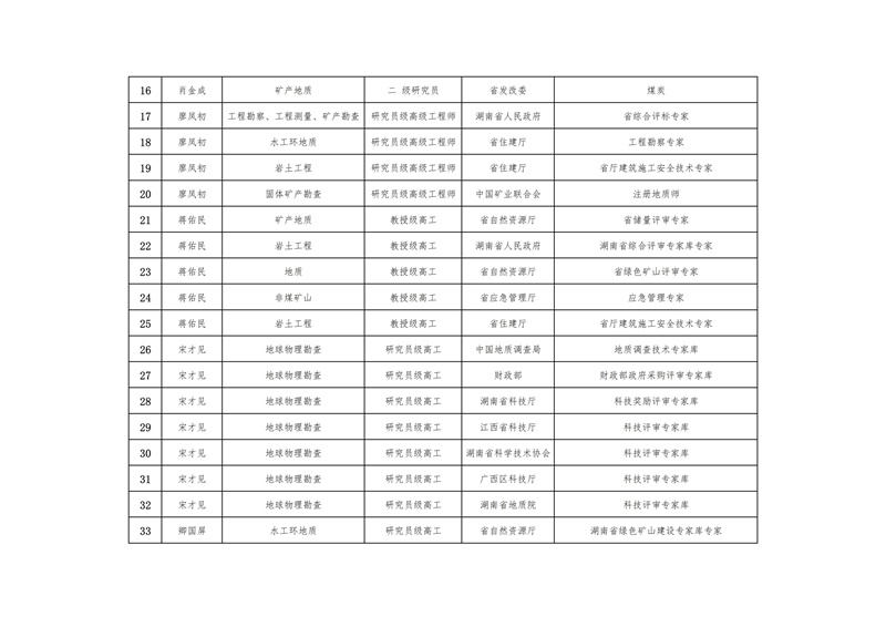 湖南省地球物理地球化学调查所专家团队,享受国务院和省政府专家2人,专业技术人员中包含二级研究员级高级工程师、研究员级高级工程师、正高级工程师、高级工程师、高级政工师、高级会计师、高级经济师等,具体专家团队如下:
