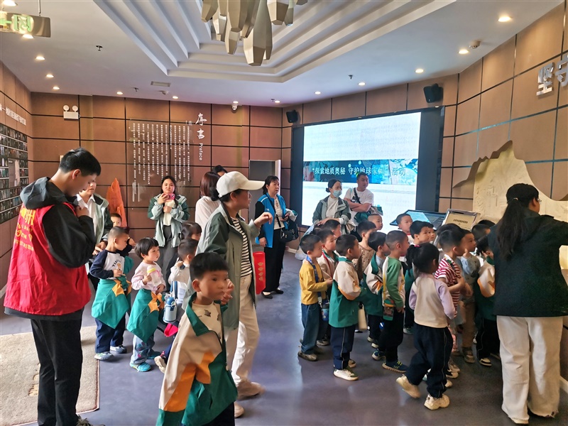 活动中,孩子们在讲解员的带领下分批探访地质科技馆、气象馆、天文馆、球幕影院、VR馆等场馆。形态各异的矿物标本、精密复杂的观测设备、动态演示的科普展项,如同一把把钥匙,为孩子们打开了科学认知的大门。通过互动讲解与科普视频的立体呈现,孩子们不仅对地球结构、矿产奥秘、气象变化等知识有了初步的了解,科学探索的种子在童心沃土中悄然生根。