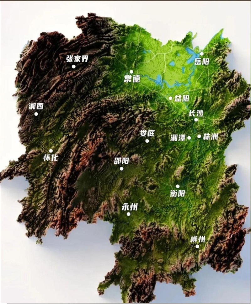 ▲湖南地形示意图