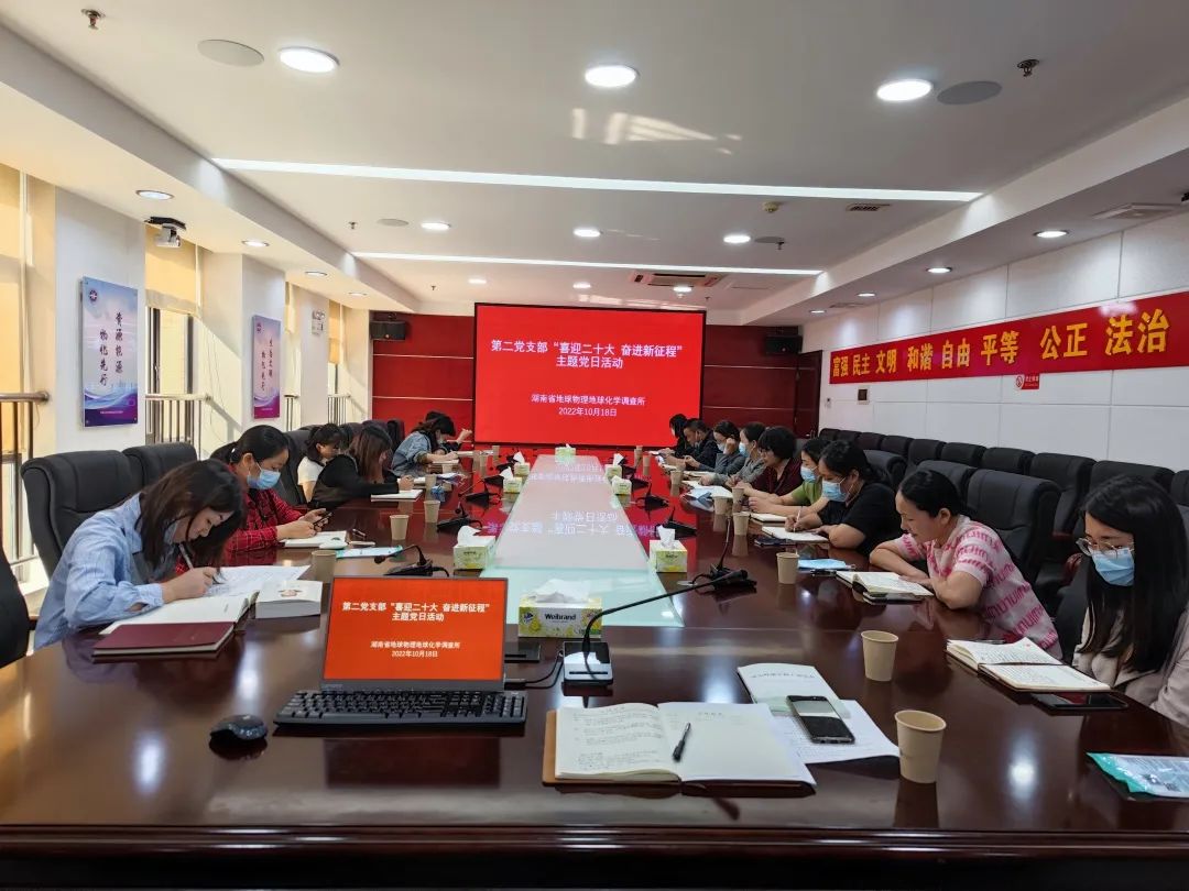 根据所党委统一安排部署,湖南省地球物理地球化学调查所所属各党支部积极组织党员干部收听收看党的二十大开幕盛况,并迅速开展党支部专题学习研讨党的二十大报告,引导党员干部以党的二十大精神为指导,认真学习、深刻领会、准确把握报告的精神实质和丰富内涵,切实把思想、认识和行动统一到党的二十大精神上来,切实把学习党的二十大精神激发出来的热情和干劲,转化为推动地质事业高质量发展的强大动力。