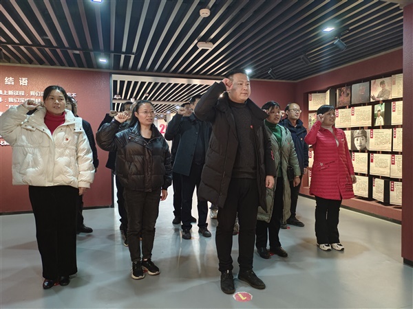 在宣誓厅,党员们在支部书记的带领下面向鲜红的党旗坚定地举起右手庄严宣誓,重温入党誓词,在掷地有声的誓言中,再一次感受到作为党员的荣耀、使命和责任。