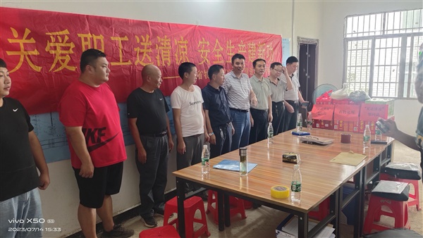 覃贤禄、何立宏一行来到项目现场走访慰问一线职工,亲切询问了他们的工作生活情况,给他们送上了王老吉等防暑物资,对他们在酷暑中坚持工作的奉献精神表示了肯定,同时叮嘱他们合理安排工作时间,防止高温中暑。并全面仔细对项目建设、施工现场管理、井口防护、临时用电、安全记录等情况进行了检查。