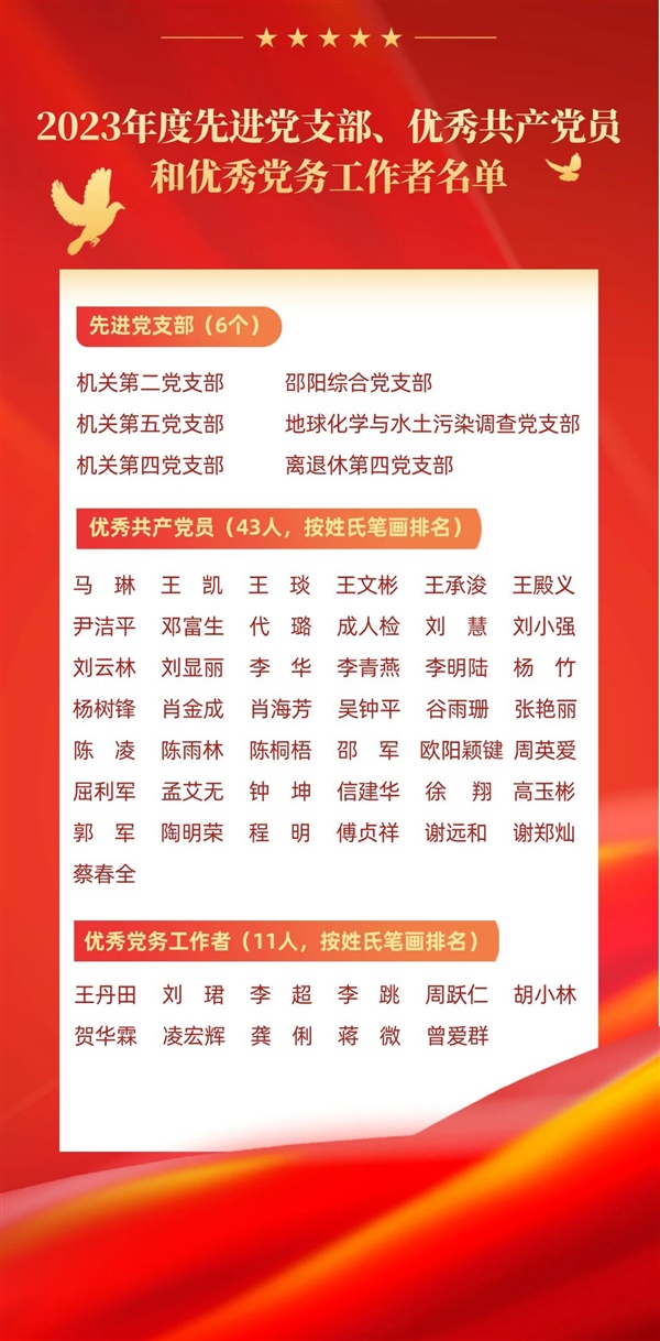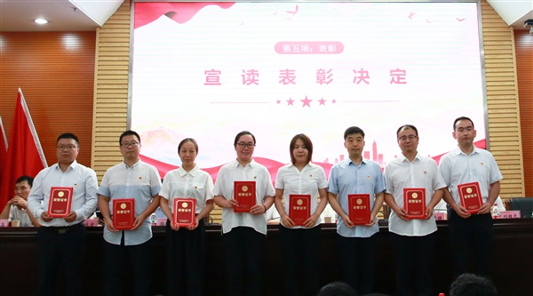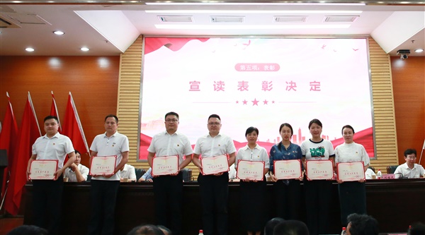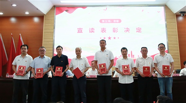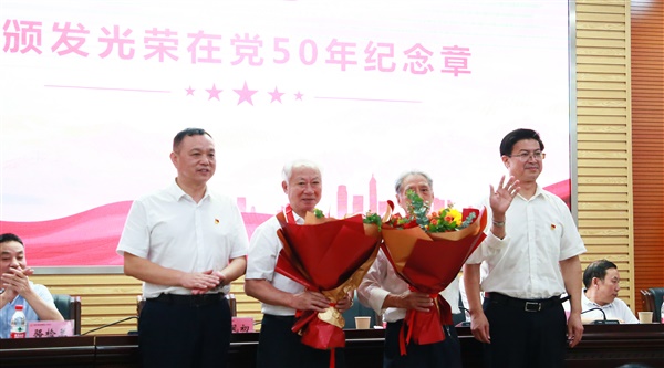 会上,廖凤初和雷建斌为2名光荣在党50年的老党员代表颁发了纪念章。覃贤禄宣读了表彰文件,机关第二党支部等6个先进党支部、马琳等43名优秀共产党员、王丹田等11名优秀党务工作者受到表彰,所领导为获奖代表和人员颁发奖牌和证书,3名获奖代表分享了自己的工作经验和心得体会。