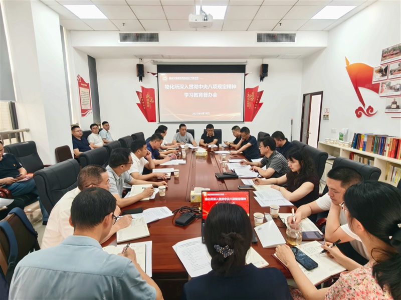 6月16日,省物化所召开深入贯彻中央八项规定精神学习教育督办会,督导各党支部深入贯彻中央八项规定精神学习教育情况。党委书记雷建斌出席并讲话,纪委书记覃贤禄主持会议,各党支部书记、党群工作部全体人员参会。