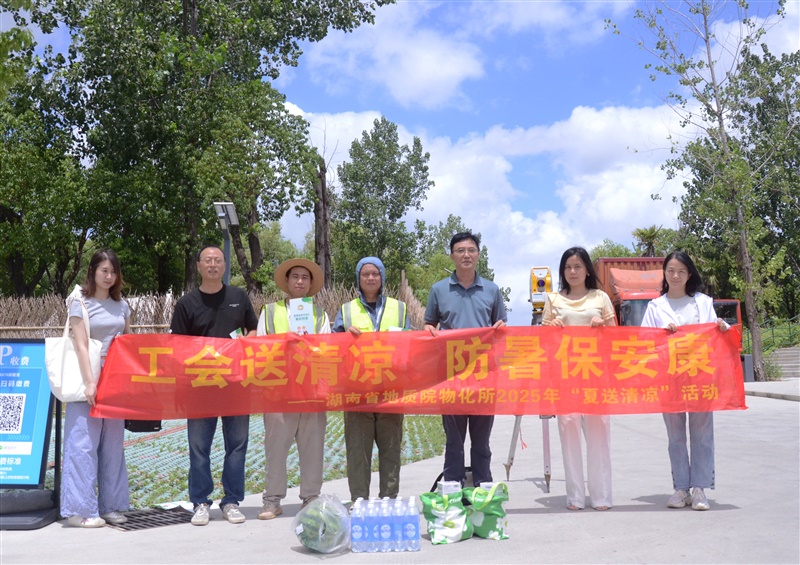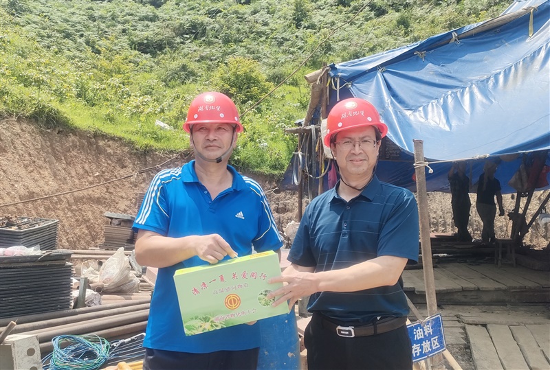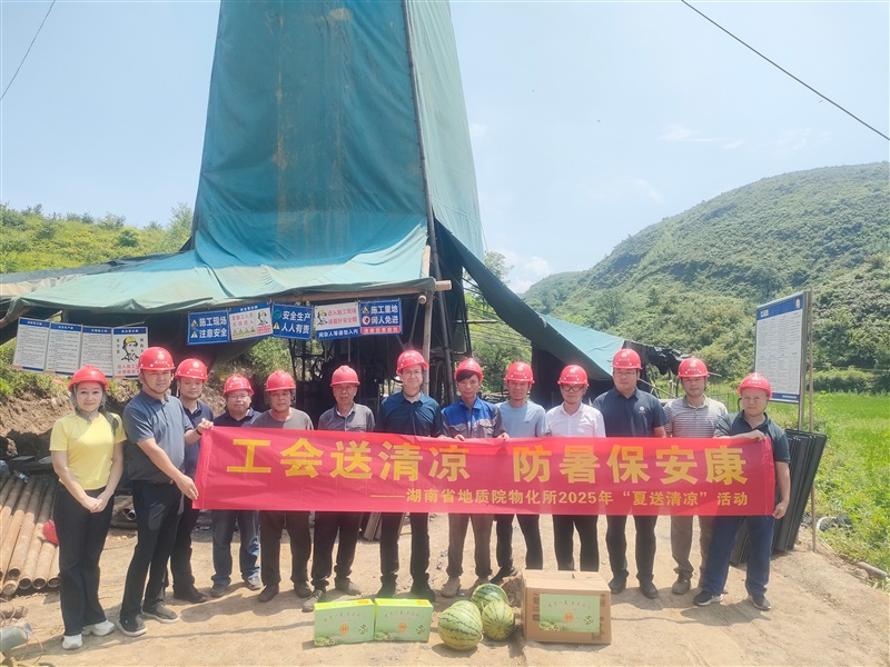 所党委书记雷建斌赶赴零陵水埠头矿区锰矿详查项目现场,为一线职工送上藿香正气水、夏桑菊颗粒、王老吉凉茶等防暑物资。他认真听取项目党建、进展与安全生产汇报,强调要坚持理论武装,推动党建与业务深度融合,积极开拓国内外地质市场,努力争创一流,为湖南地质事业高质量发展贡献力量。
