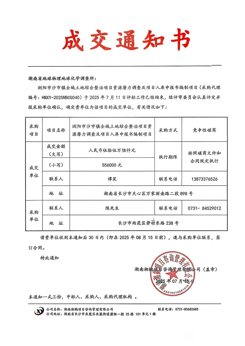浏阳市沙市镇全域土地综合整治项目实施方案编制技术服务项目