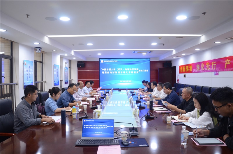 中国地质大学(武汉)地球科学学院相关学科负责人,物化所办公室、科技合作室、总工办、地球化学调查中心、地球化学过程与资源环境效应湖南省重点实验室相关同志参加座谈。