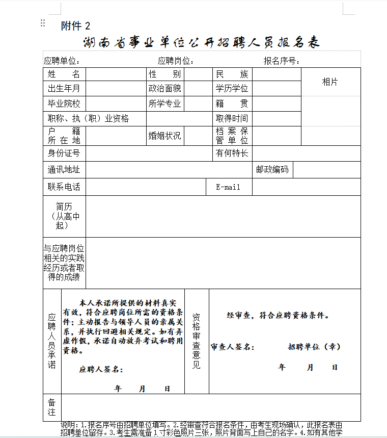 2.湖南省事业单位公开招聘人员报名表