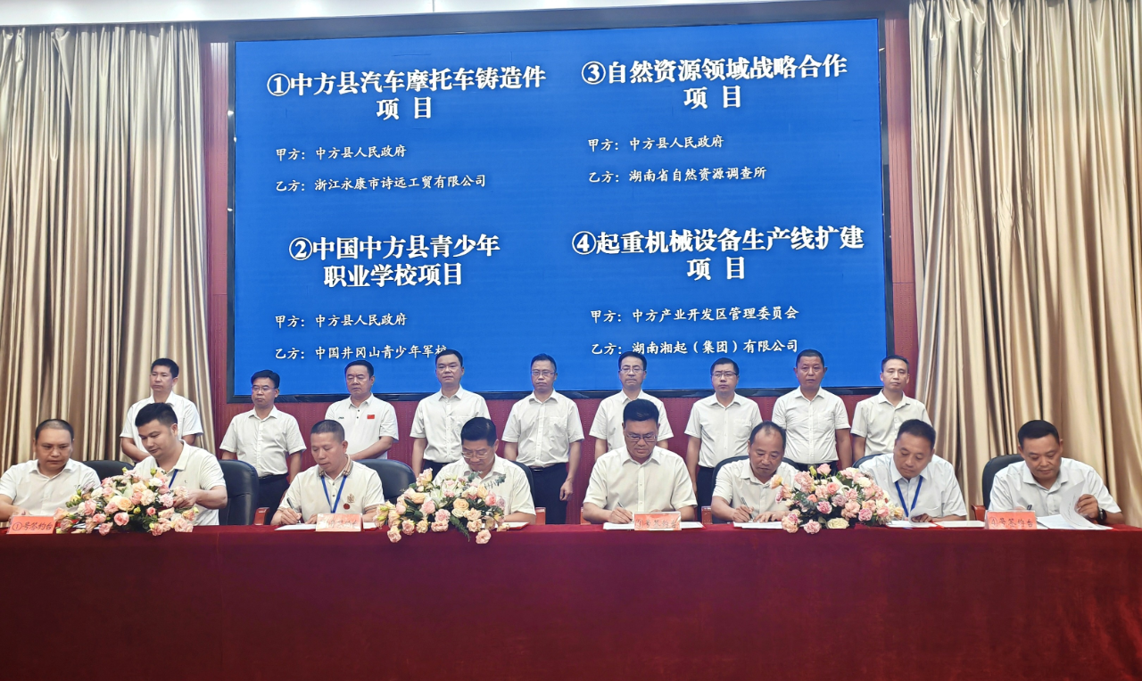 9月6日,怀化市中方县举行2024年湖南省(秋季)乡村文化旅游节暨2024年湖南省(秋季)村晚示范展示活动重点招商引资项目推介及签约仪式。中方县人民政府与湖南省自然资源调查所战略合作协议在活动上正式签约。中方县委书记张家铣,县委副书记、县长胡杰及全体在职县级领导参加,资源所所长蒋安元、所领导曹进良、赵央连参加。中方县副县长田华、资源所副所长赵央连分别代表各方在战略合作协议上签字。