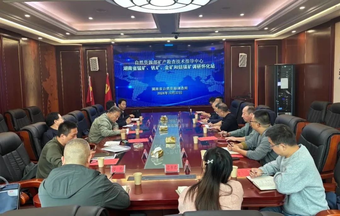 省资源所对调研组一行的指导表示热烈欢迎和衷心感谢,所领导曹进良重点介绍了资源所主要职能和业务,湘西中心介绍了雪峰弧形构造带中—南西段区域地质背景,金矿、钒矿战略性矿产资源主要矿床类型及分布等特征,重点汇报了洪江市大坪金矿详查项目取得的找矿成果。