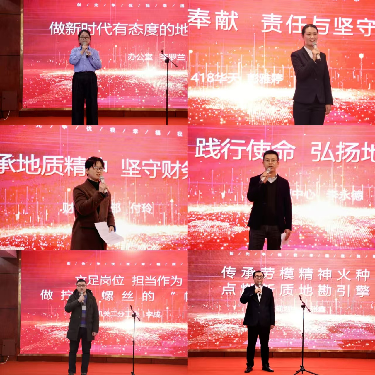 选手是来自各部门的优秀中层干部和业务骨干,他们依次登台亮相展现演讲风采,为职工们带来了一场视听盛宴。他们的演讲以培育资源所地质新质生产力为主题,结合自身岗位实际,从如何立足岗位做贡献、创先争优当先锋、干事创业增幸福三个方面,用生动的语言、真挚的情感和深刻的见解深情叙述了资源所各领域、各部门投身全国一流新时代地质强所建设的决心,抒发了浓浓的地质事业情怀。