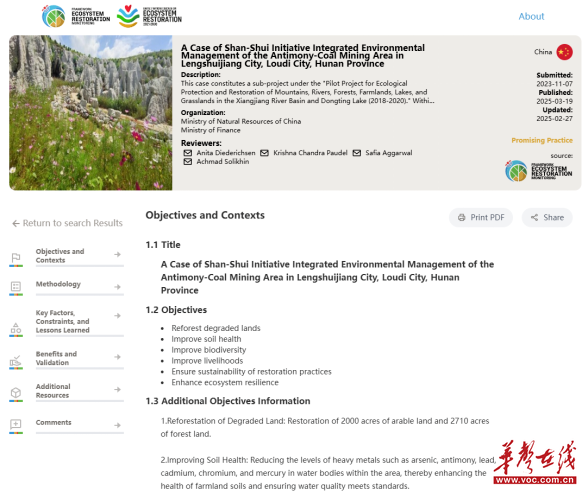 近日,在联合国环境规划署(UNEP)和粮农组织(FAO)开展的联合国“生态系统恢复十年”行动中,省资源所参与的冷水江锑煤矿区生态修复项目成功入选联合国“生态系统恢复十年”优秀案例。联合国“生态系统恢复十年”行动在全球遴选20个优秀生态修复案例,我国入选5个。目前正通过官方平台——生态系统监测框架(FERM)网站在线展示。该项目的实施产生了巨大的经济效益和社会效益,强力助推了我所品牌建设,实现品牌赋能。
