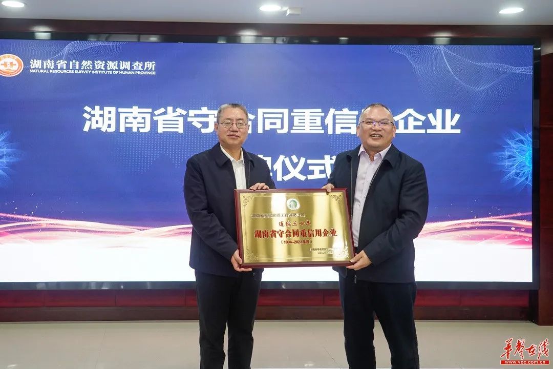 全省第4家|省资源所喜获“连续30年以上湖南省守合同重信用企业”荣誉