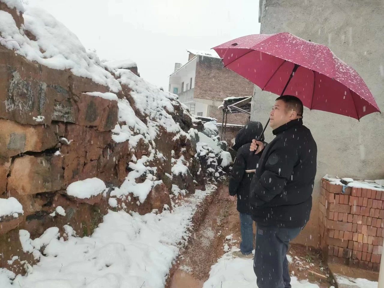 2月7日(腊月二十八),娄底市娄星区副区长周俊华带队前往万宝镇地质灾害隐患点巡查,湘南中心技术员彭建源随行,对地灾隐患点开展地表踏勘,对雨雪冰冻极端天气可能出现的山体滑体、房屋开裂进行科学研判,并提出专业防范和警戒建议。