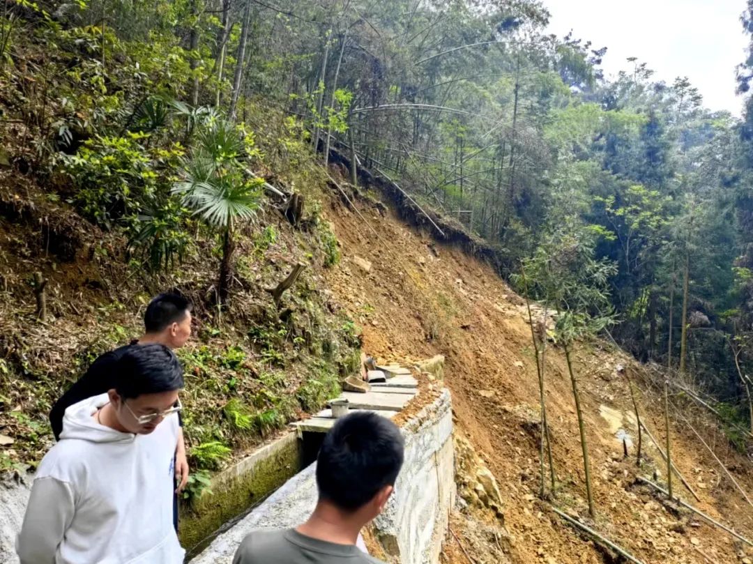 4月30日,新化县大熊山景区公路边坡发生滑坡地质灾害,水环中心地质灾害技术人员黄杰军、胡弘毅第一时间赶赴现场,查看山体稳定情况,提出应急处置措施。