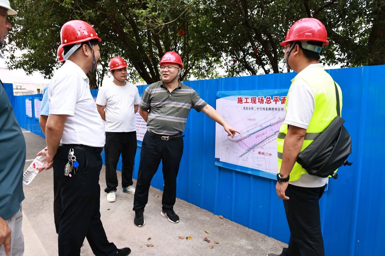 项目工地现场,蒋安元详细了解项目部施工人员组织情况、施工进度计划及安全文明施工情况。他反复叮嘱,娄底二中滑坡治理项目是娄星区委常委议事协调会上指定我所承担的重大民生工程,备受社会各界关注和群众期盼,意义重大。水环中心要落实好安全生产主体责任,抓好现场施工管理,合理安排作业时间,执行高温天气户外露天作业相关规定,确保生产和安全两不误。要切实履行事业单位公益性职能,主动担当作为,严格按照业主方工作部署,始终以过硬的技术素养和工作作风,为娄底二中滑坡治理工程提供专业、高效、全面的技术支撑和服务保障,为地方“防灾减灾救灾”贡献资源所力量!(文/水环中心 朱 超 图/办公室 龚慧云)