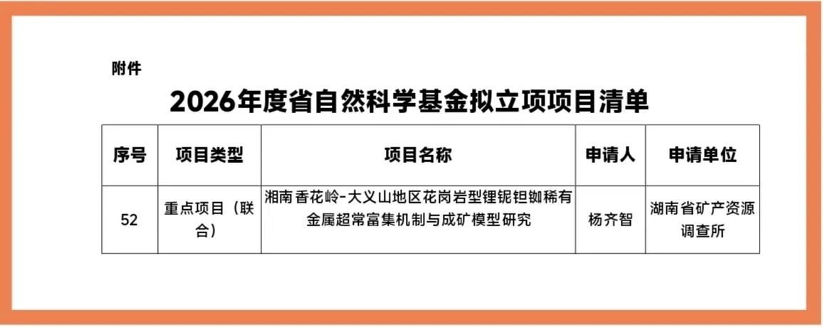 省矿调所牵头项目获2026年度湖南省自然科学基金重...
